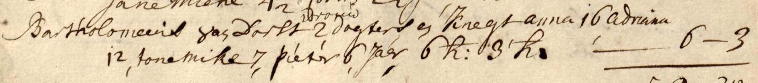 Bastiaentje 15, Cathaleijn 12, Anneke 5, Bartholomeus 3