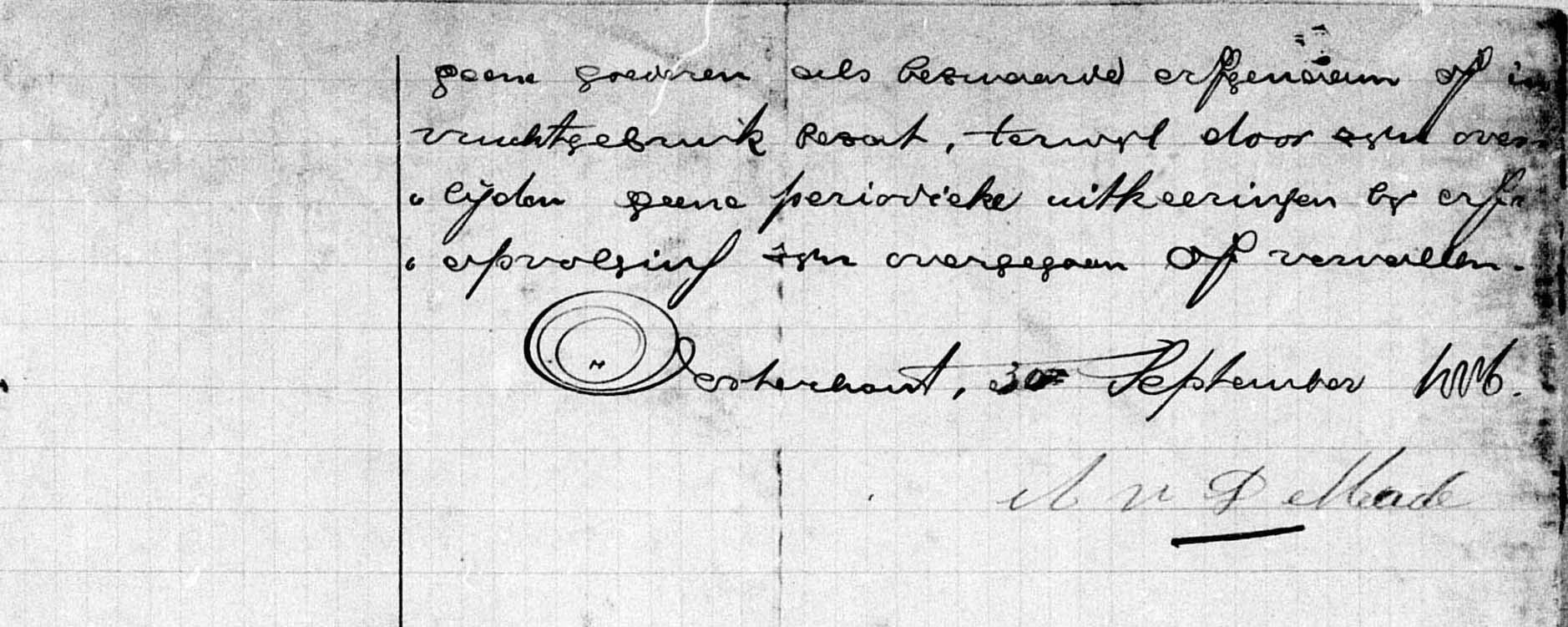 Oosterhout 30 September 1886 Dunne handtekening van zijn vrouw Adriana van der Made |
