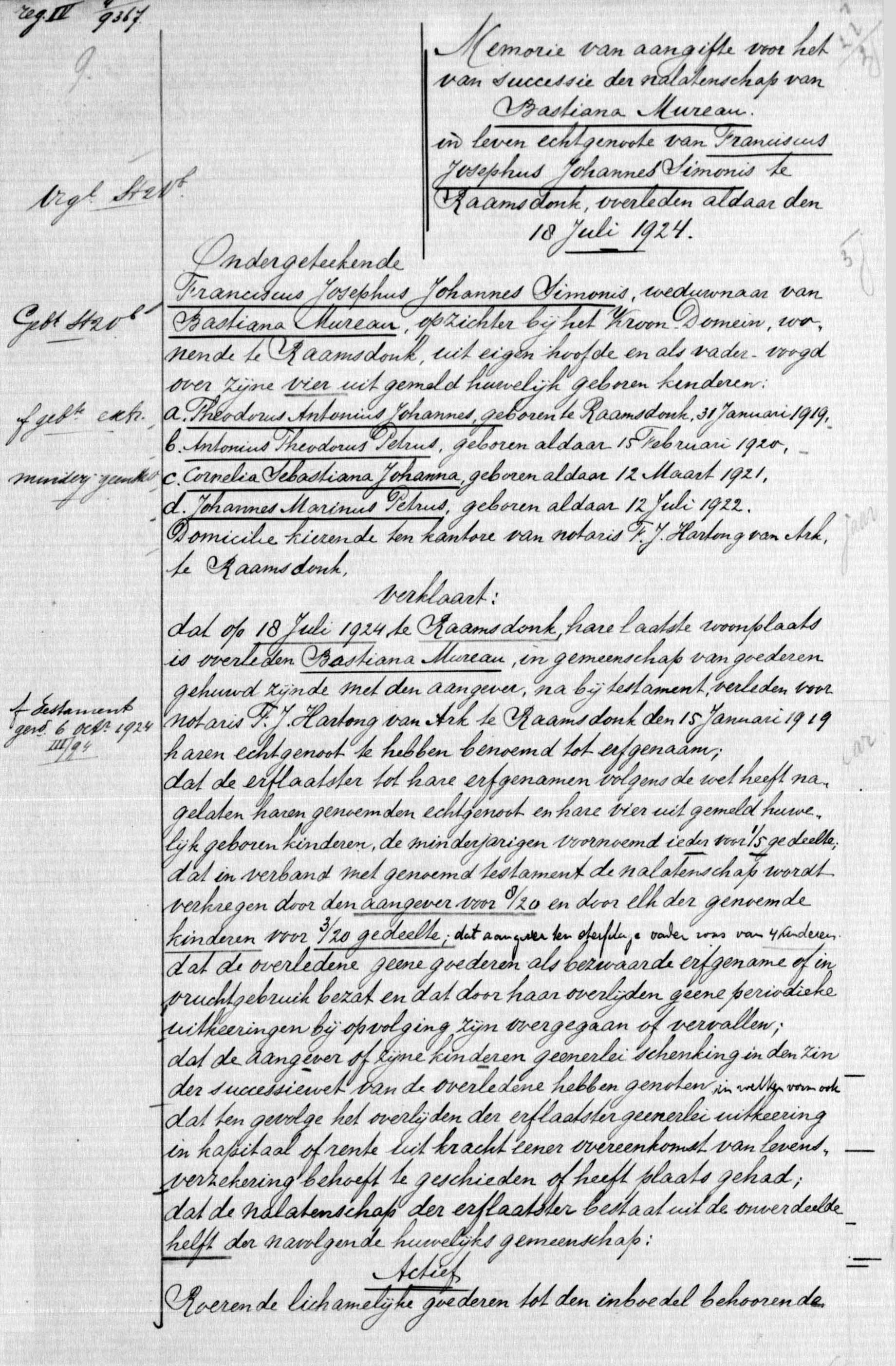 .... etc ...etc verwijzing naar testament 15-1-1919 in Raamsdonk bij notaris Hartong van Ark (zie aldaar)