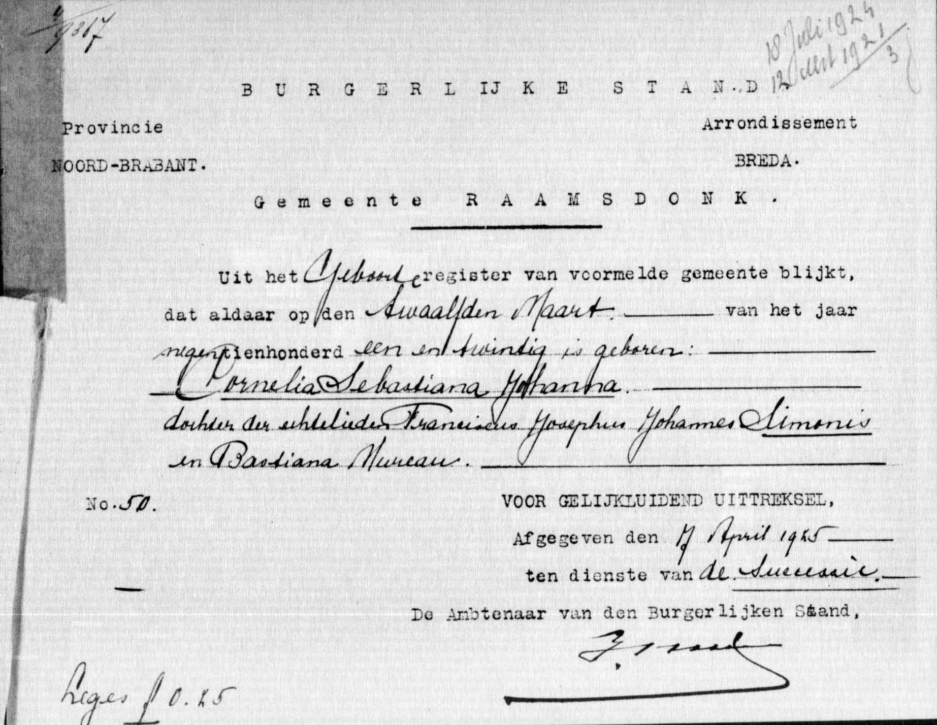 in leven echtgenoot van Franciscus Josephus Johannes Simonis te Raamsdonk, overleden overleden aldaar den 18 juli 1924