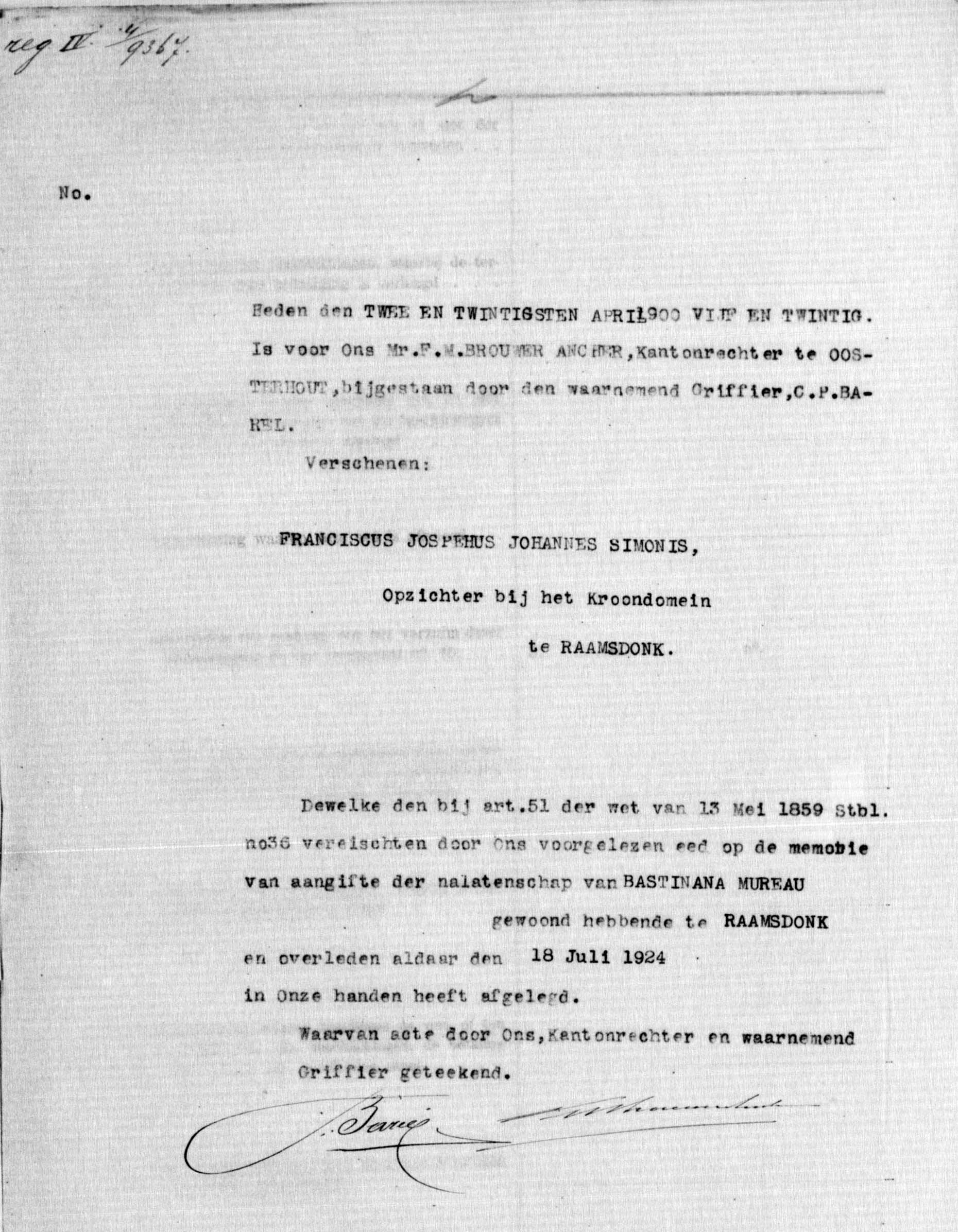 Memories van Successie Oosterhout 1923-1927, archiefnummer MvS 1903-1927, inventarisnummer 1923-1927