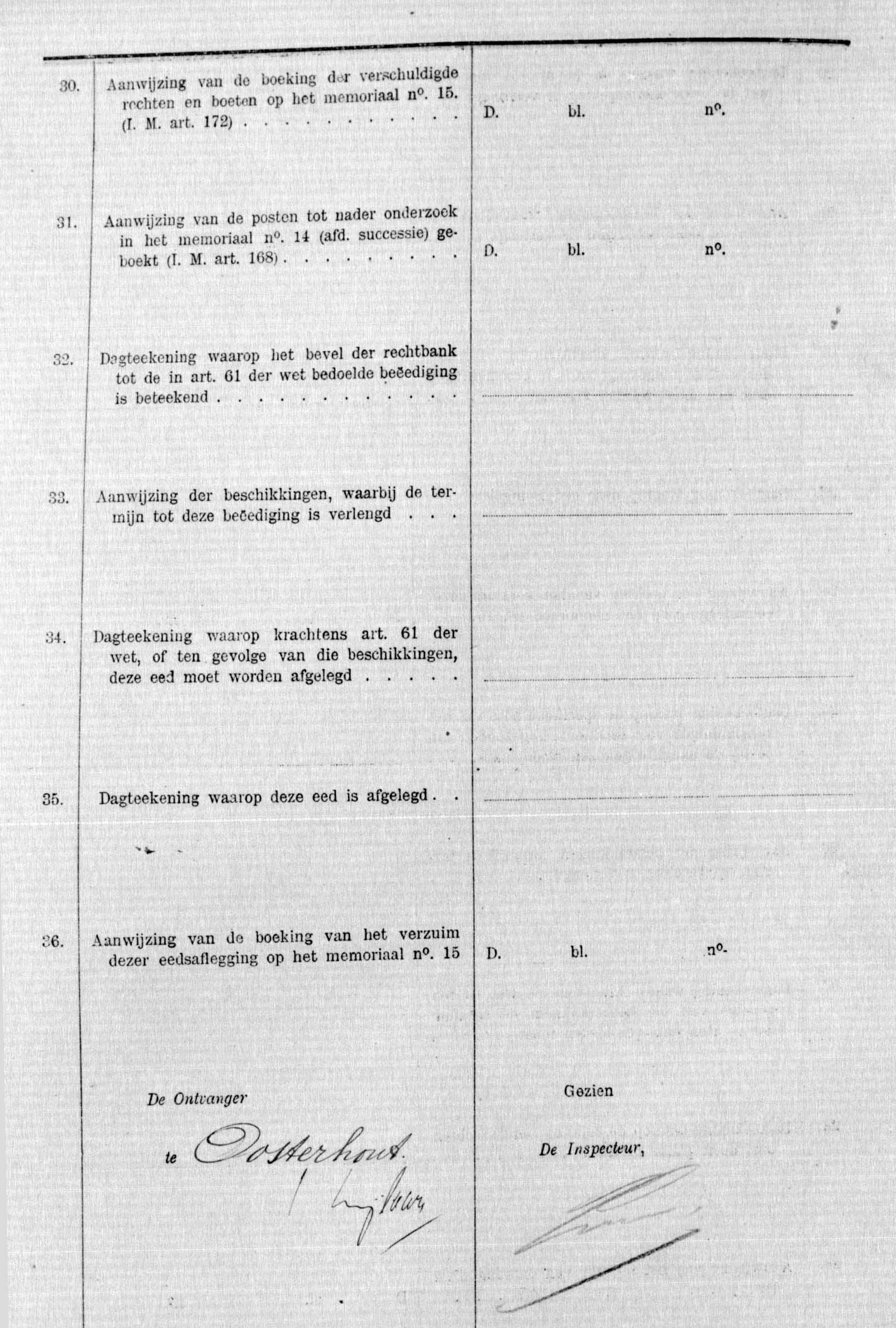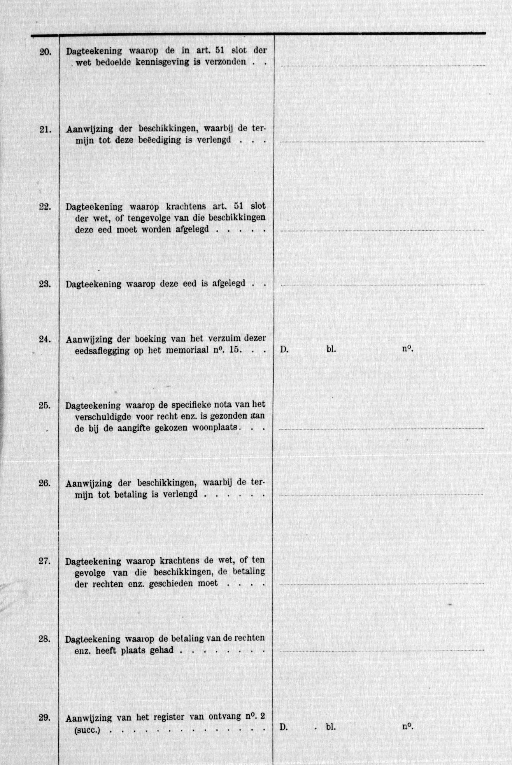 Memorie van aangifte voor het recht van successie der nalatenschap van